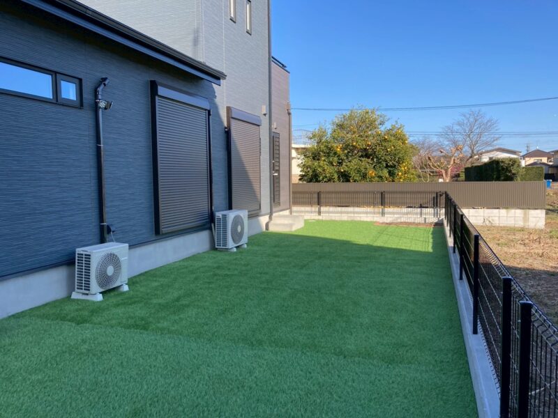 防草シートを敷き、人工芝設置を致しております。お庭を綺麗に良い状態に保ちます。